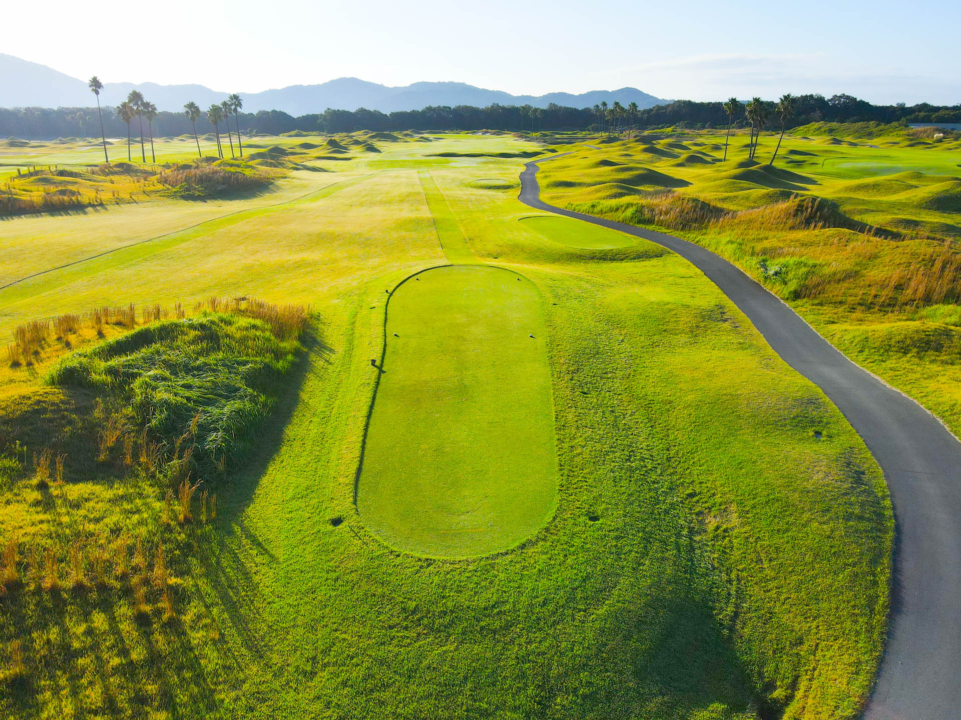 真っすぐのpar4。コースを横断するクリークを越すか、刻むかの判断が求められる難易度の高いホール。ロングヒッターは右サイドのクリークとグリーンまで続く池に気を付けること。グリーンは手前から速くなるので要注意!